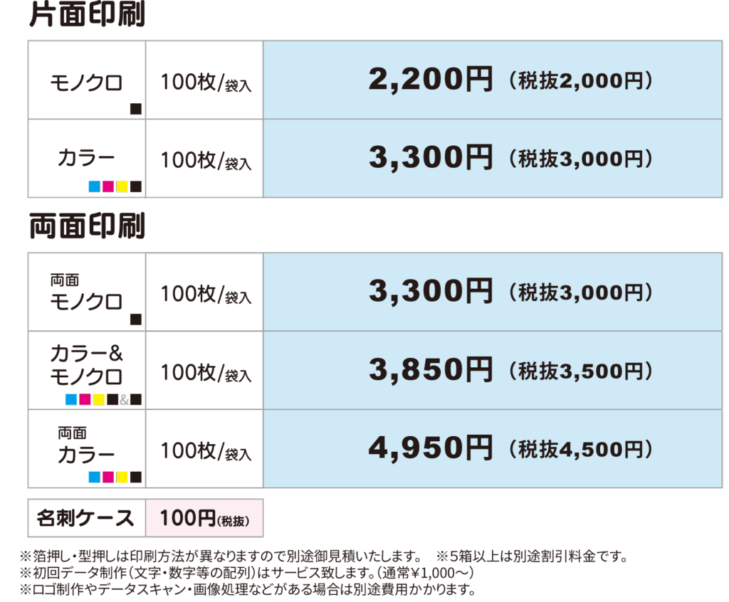 ビジネスやプライベートで欠かせない名刺印刷サービスを承っております。